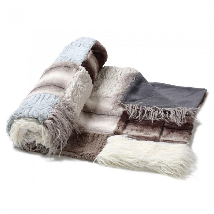 Manta de patchwork en microfibra y piel de imitación 100% poliéster.