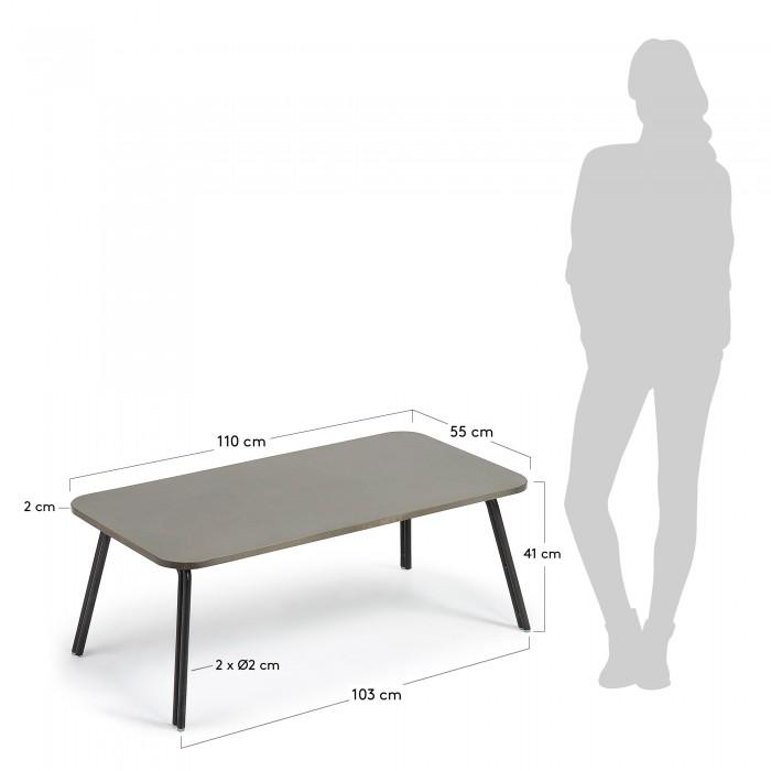 Mesa de centro con estructura en acero galvanizado pintado por pulverización. Sobre en poly-cemento Superstone. Para uso interior y exterior bajo techo.