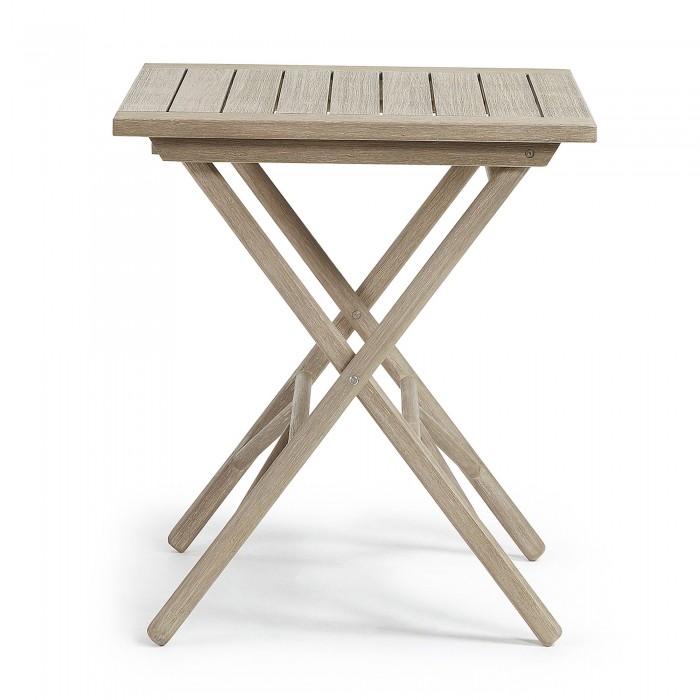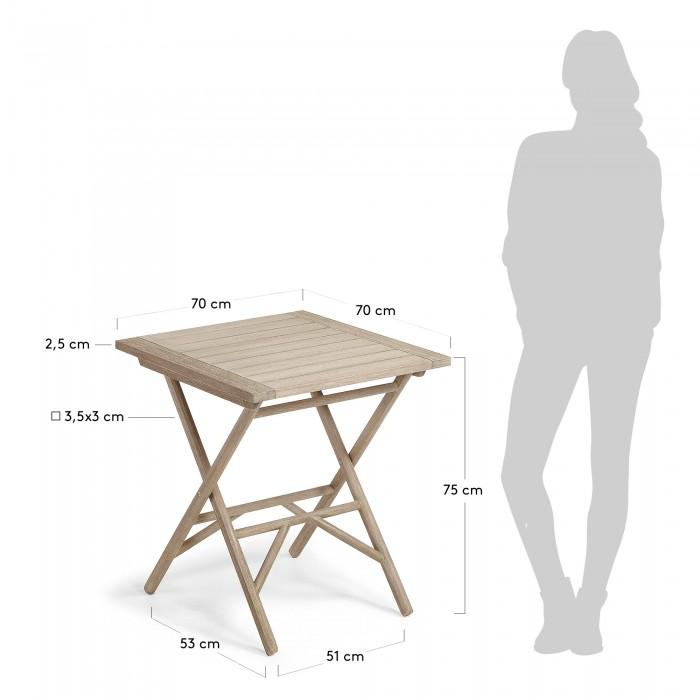 Mesa plegable en madera de eucaliptus maciza. Tratamiento Nano Oil PNZ para larga durabilidad y protección UV. Para uso interior y exterior bajo techo.