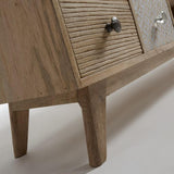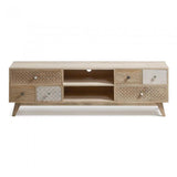 Mueble de Tv en madera de mango maciza con cajones tallados e impresos.
