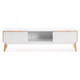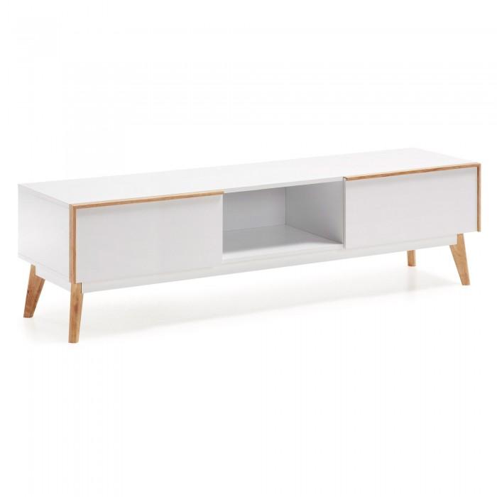 Mueble de Tv en DM lacado mate. Pies, tiradores y marco en madera de roble macizo.