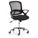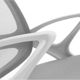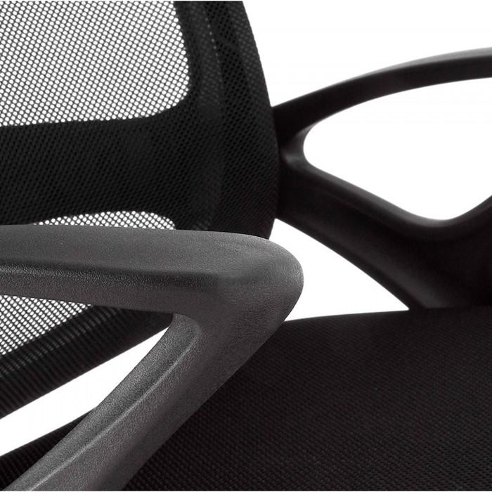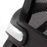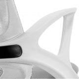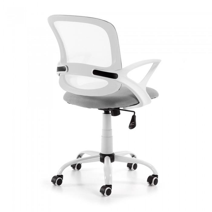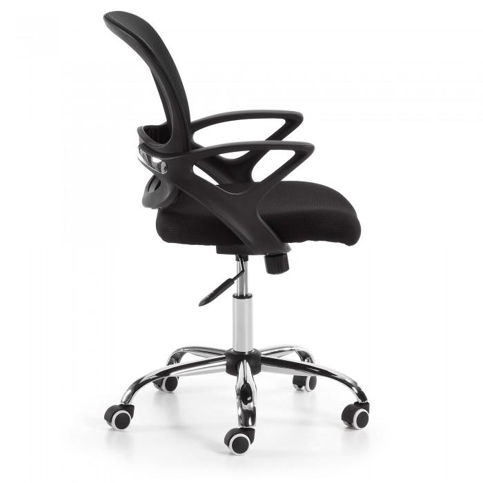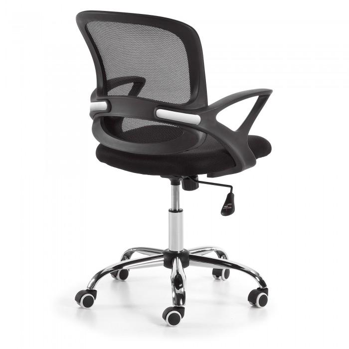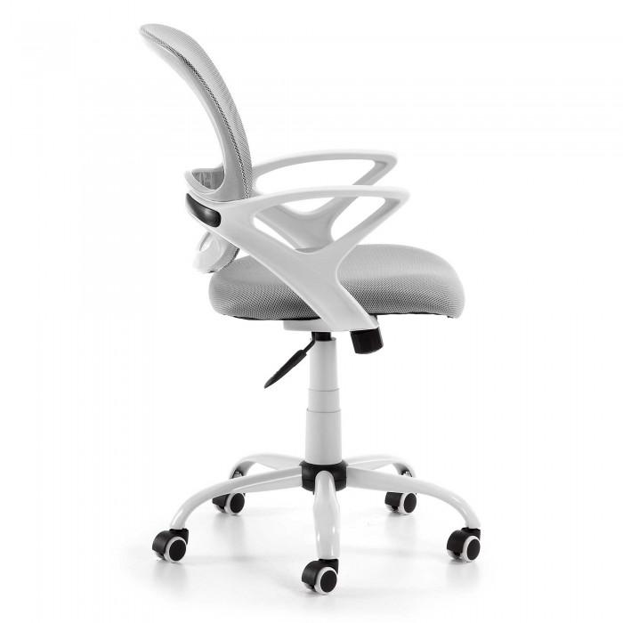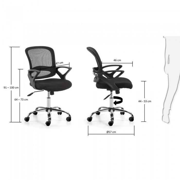 Silla de oficina giratoria con estructura y reposabrazos y en polipropileno inyectado. Asiento y respaldo tapizado en tela de rejilla. Sistema de elevación a gas. Basculante.Pies en acero pintado con ruedas de poliuretano.